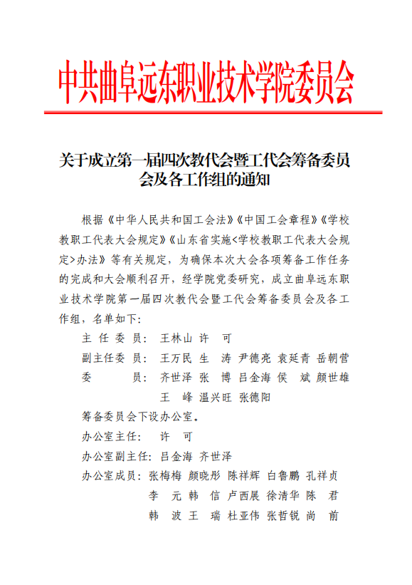 关于成立第一届四次教代会暨工代会筹备委员 会及各工作组的通知