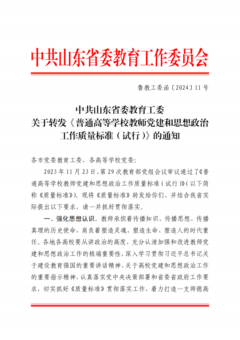 关于转发《普通高等学校教师党建和思想政治工作质量(试行)》的通知
